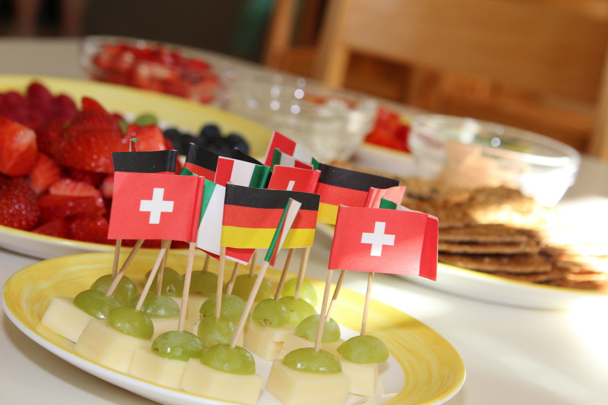 Nach der Ruhephase haben die Kinder die Möglichkeit aus den bunt gefüllten Brottaschen von zu Hause zu schmausen oder sie können sich vom kleinen Kita-Buffet bedienen.