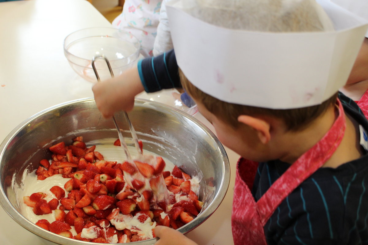 Gesunde Ernährung ist für die kindliche Entwicklung in mehrfacher Hinsicht von Bedeutung. Sie liefert die notwendige Energie die ein Kind benötigt, um sich aktiv im Alltag zu bewegen, zu spielen und sich körperlich, motorisch und kognitiv zu entwickeln. Mahlzeiten bieten Raum und Zeit um Nahrung aufzunehmen, Tischkultur zu erleben und miteinander ins Gespräch zu kommen. In Jokis Bistro nehmen unsere Krippengruppen die Mahlzeiten zu sich. Die Krippenkinder hingegen erleben auch bei den Mahlzeiten noch die geschützte Atmosphäre der Gruppenräume. Die warme Jahreszeit wird für Picknick-Mahlzeiten genutzt.